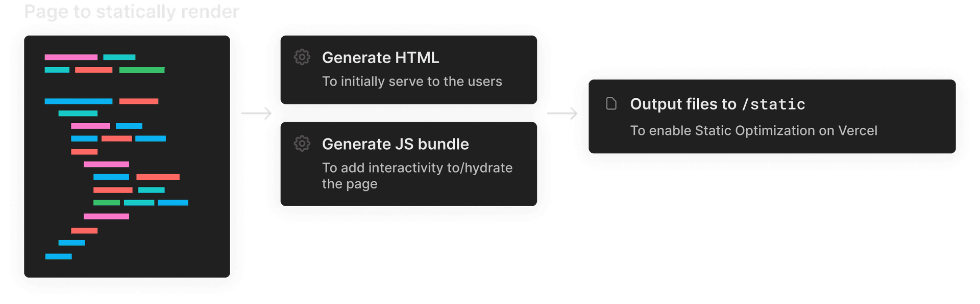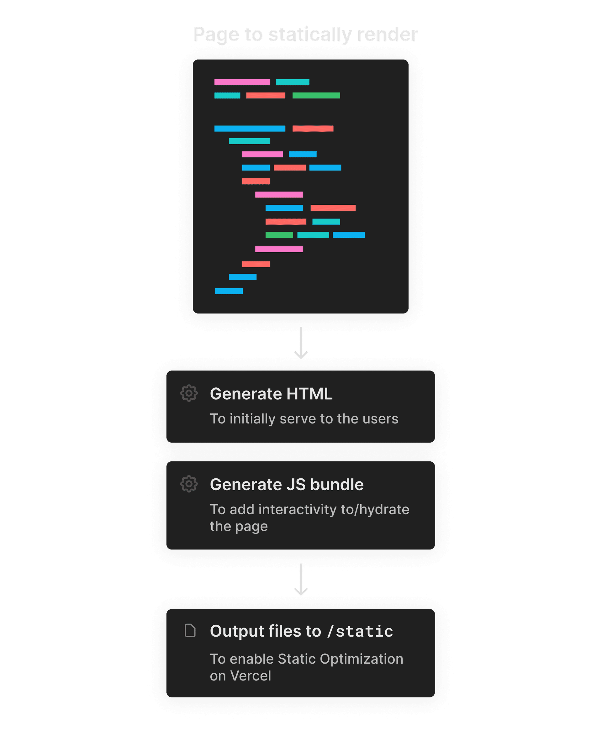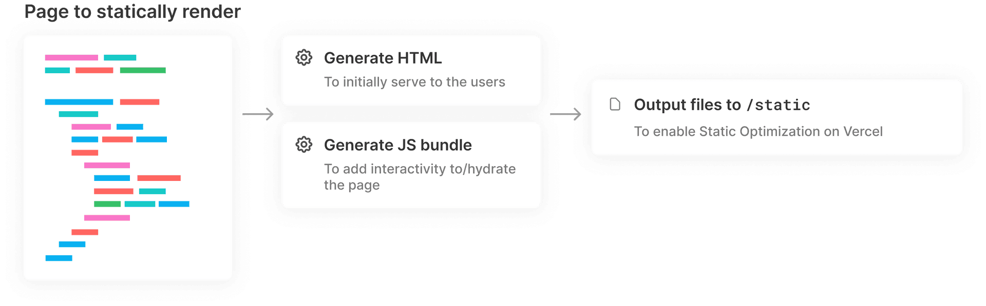 When a page is statically rendered, the page’s HTML is generated during the build. Vercel's Edge Network can quickly return this pre-generated HTML file when a user visits the page, after which the browser can draw the contents to the user’s screen.