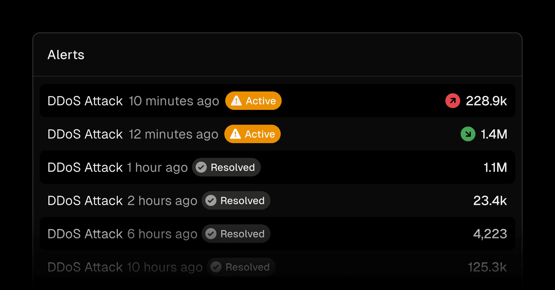Alerts shows recently mitigated DDoS attacks