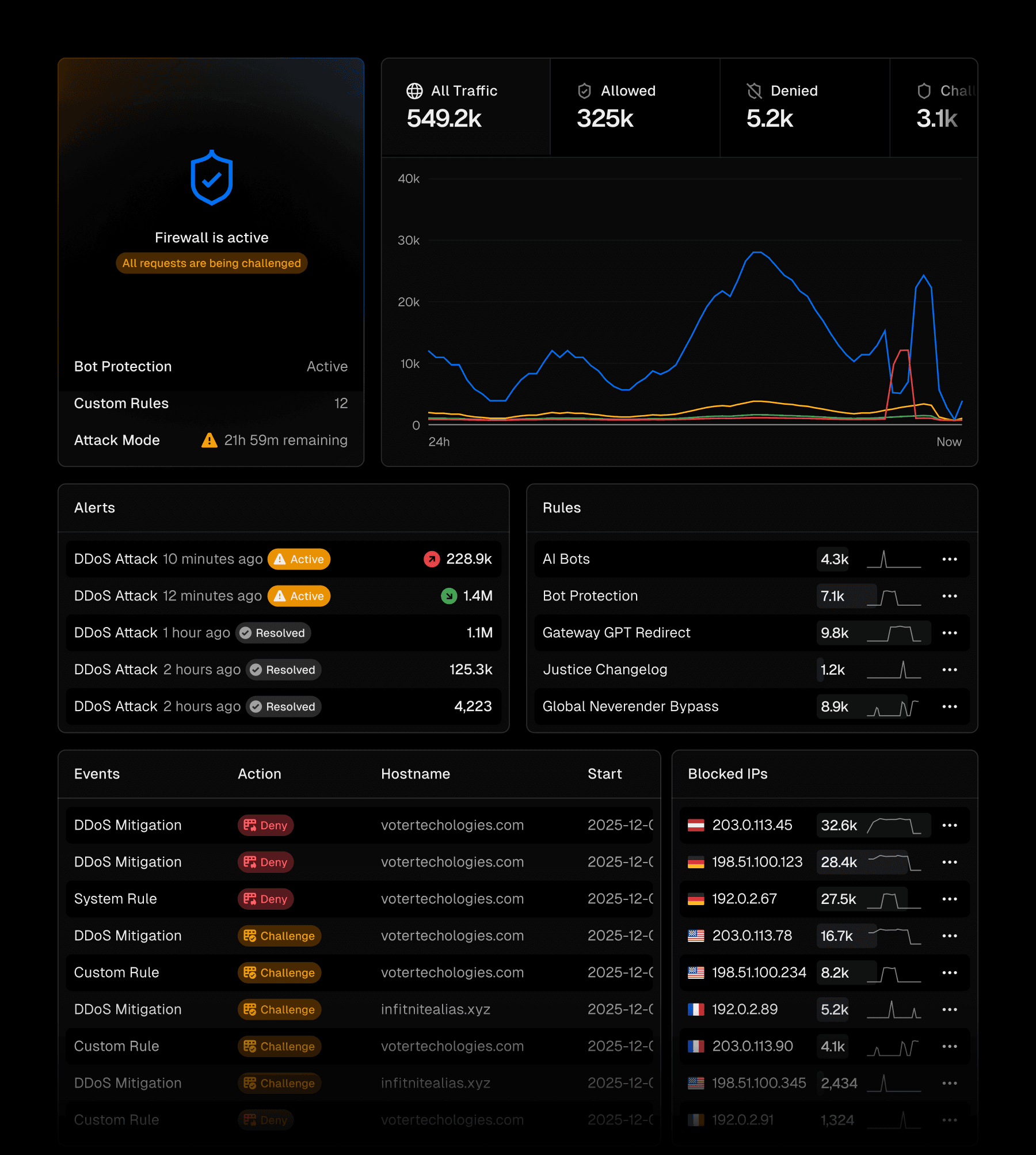 The Overview page is your high-level control center for the Firewall. It gives you a clear, birds-eye view of your site’s security posture. The traffic chart remains at the top, and we now surface the most important information based on recent activity.