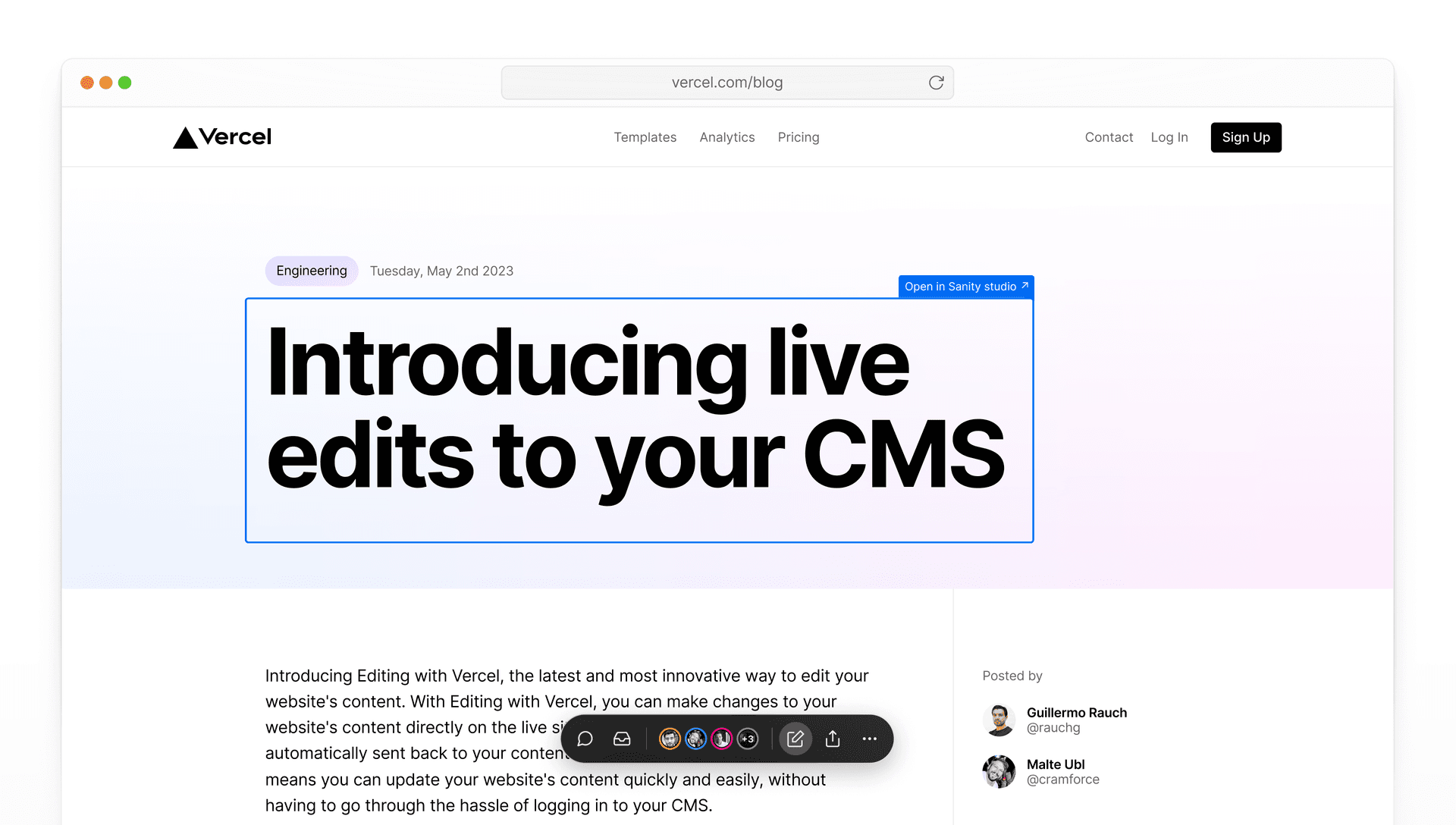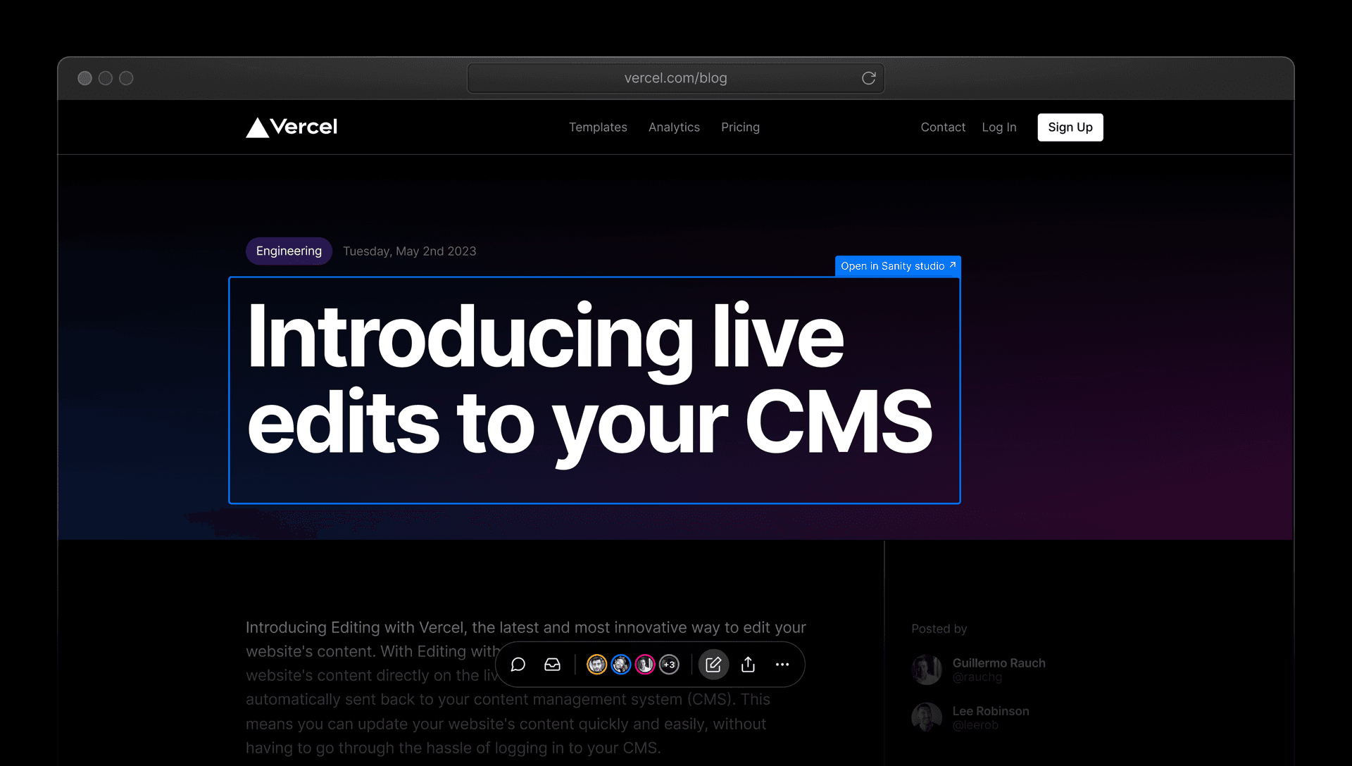 Link to headingVisual Editing: Vercel and Sanity’s joint solution for content collaboration