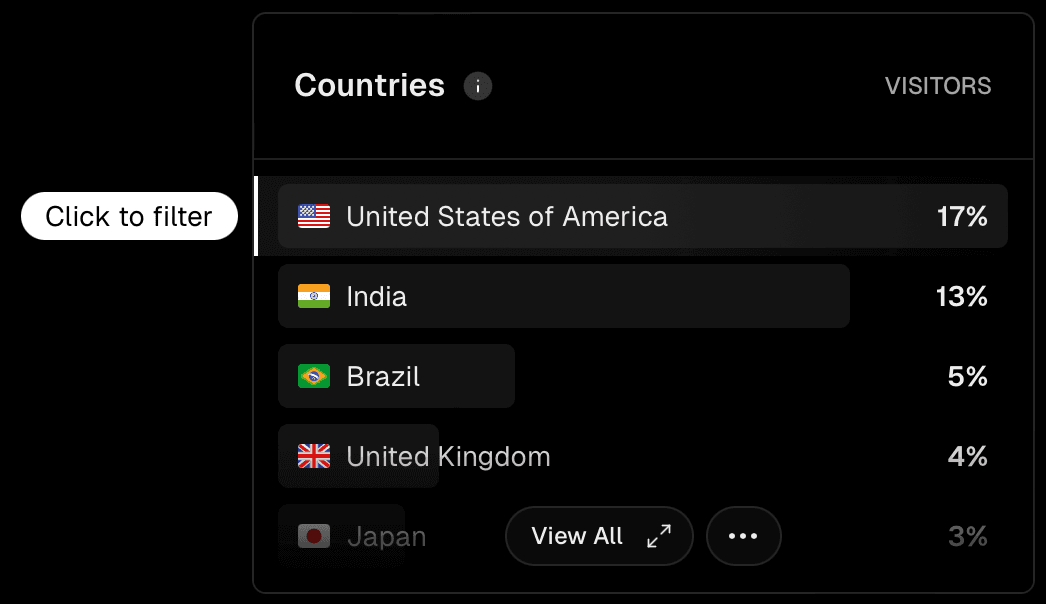 - Go to the Countries panel, select View All to bring up the filter box.