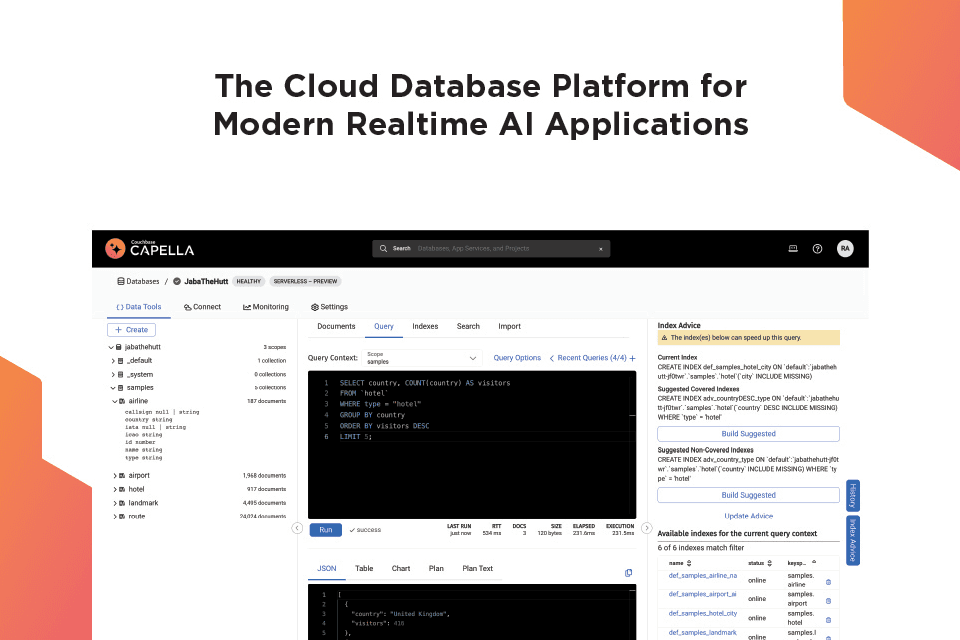 Couchbase Capella is an award-winning distributed NoSQL cloud database-as-a-service that delivers unmatched versatility, performance, and scalability. As a developer, you can leverage Capella's fast and flexible cloud database platform to build applications that offer premium user experiences while keeping costs in check. Capella simplifies the development process by providing built-in application services and a query language based on SQL, enabling effortless creation of highly reliable apps.