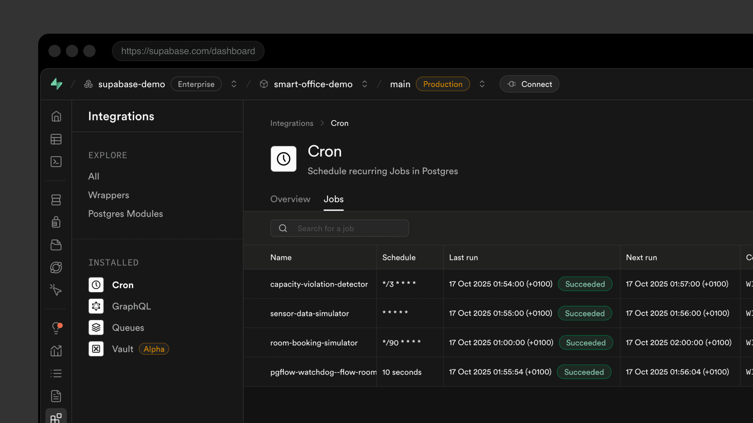 By integrating Supabase with Vercel, developers can leverage a Supabase Postgres Database, Auth, and Storage, Edge functions and Realtime while benefiting from Vercel's hassle-free deployment capabilities.