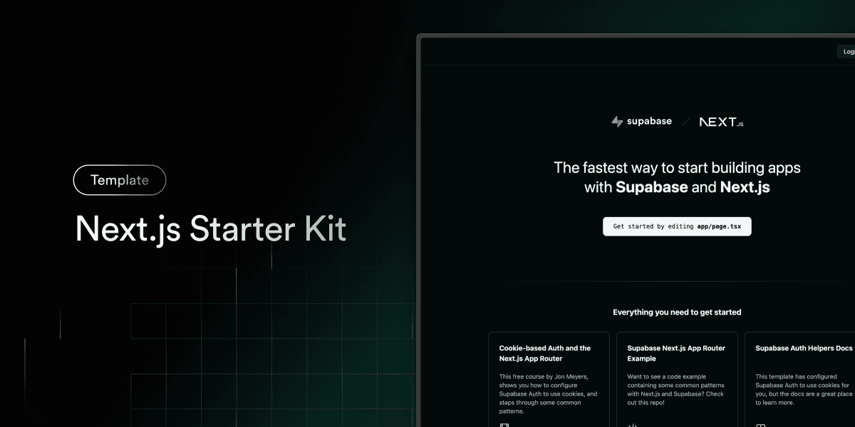 A Next.js App Router template configured with cookie-based auth using Supabase, TypeScript and Tailwind CSS.